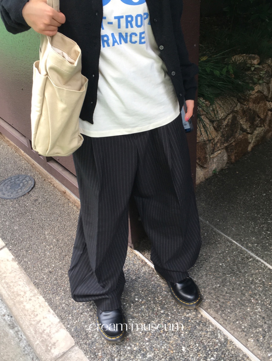 엘리 스트라이프 와이드 슬랙스 (2color)