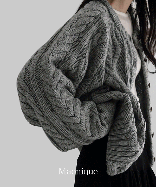 [MNQ] 라일라 오버핏 피셔 꽈배기 라운드넥 가디건 (UNISEX)