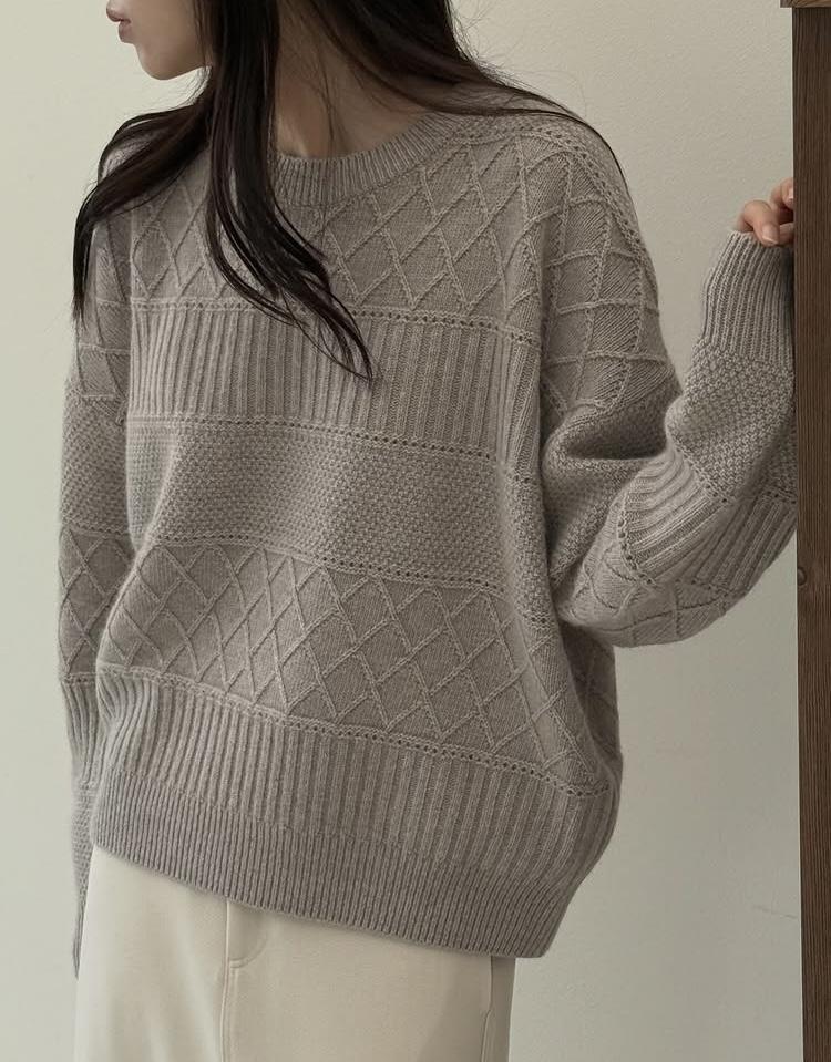 [AMYGRACE] 에이미그레이스 카멜 피셔 라운드 니트 울 긴팔니트 (3color)