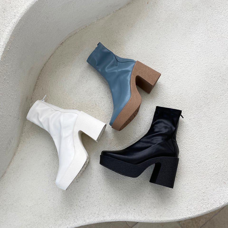 쫀쫀핏 다리가 길어보이는 통굽 삭스 스판 앵클 부츠