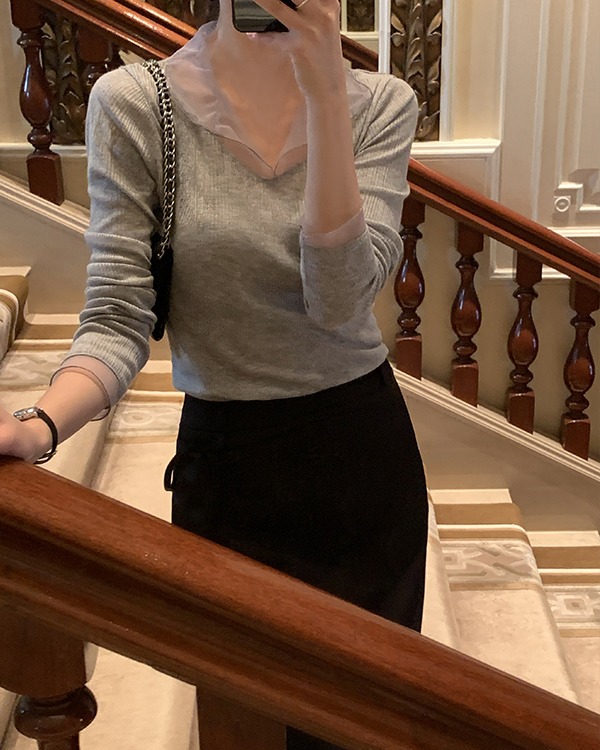 [여리핏/페미닌] 엠므 레이어드 카라 골지 티셔츠