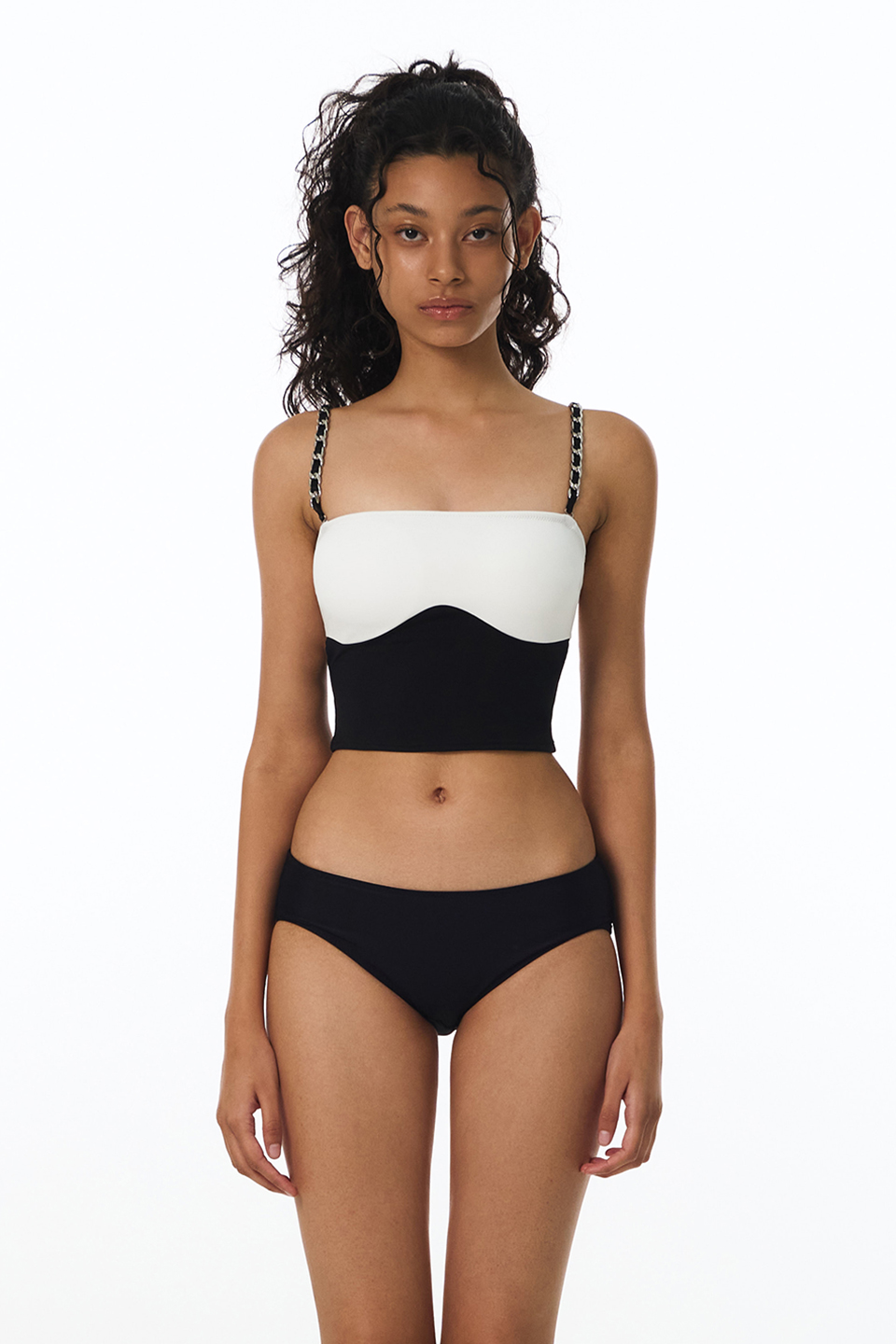 체인 콘트라스트 튜브탑 비키니브라 (Black)