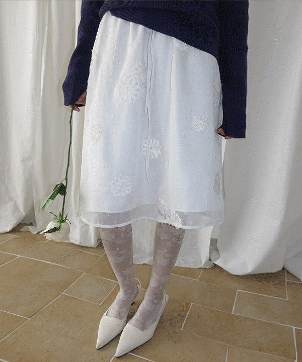 블러프 플라워 레이스 미디 스커트