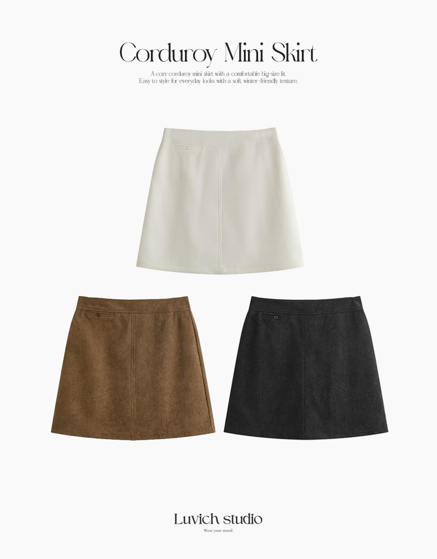 [단독♥️/XL,2XL] 빅사이즈 코르듀이 미니 스커트 치마 -3color 아이보리, 블랙, 브라운 (통통녀, 출근룩, 데일리룩,톡톡, 도톰,간절기)
