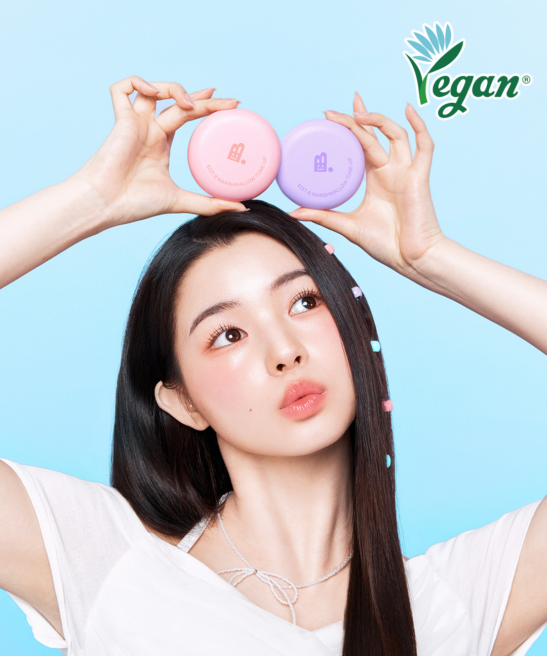 화장품법에 따라 기재, 표시하여야 하는 모든 성분[핑크]정제수, 티타늄디옥사이드 (CI 77891), 프로판다이올, 다이카프릴릴에터, 다이부틸아디페이트, 아이소노닐아이소노나노에이트, 부틸옥틸살리실레이트, C12-15알킬벤조에이트, 디에칠아미노하이드록시벤조일헥실벤조에이트, 나이아신아마이드, 펜틸렌글라이콜, 페닐트라이메티콘, 다이프로필렌글라이콜, 에탄올, 1,2-헥산다이올, 에칠헥실트리아존, 폴리글리세릴-3다이스테아레이트, 폴리하이드록시스테아릭애씨드, C14-22알코올, 알루미늄하이드록사이드, 메칠렌비스-벤조트리아졸릴테트라메칠부틸페놀, 포타슘세틸포스페이트, 스테아릭애씨드, 폴리글리세릴-6스테아레이트, 암모늄아크릴로일다이메틸타우레이트/브이피코폴리머, 폴리아크릴레이트크로스폴리머-6, 향료, C12-20알킬글루코사이드, 카프릴릴글라이콜, 클로렐라 불가리스추출물, 글루코오스, 하이드록시아세토페논, 아이소도데케인, 옥틸도데칸올, 합성플루오르플로고파이트, 황색산화철 (CI 77492), 부틸렌글라이콜, 에리스리톨, 프룩토올리고사카라이드, 프룩토오스, 폴리글리세릴-2다이폴리하이드록시스테아레이트, 자일리톨, 데실글루코사이드, 글리세릴스테아레이트시트레이트, 폴리글리세릴-4아이소스테아레이트, 적색산화철 (CI 77491), 폴리글리세릴-6베헤네이트, 아데노신, 트라이에톡시카프릴릴실레인, 아이소프로필티타늄트라이아이소스테아레이트, 글리세린, 잔탄검, 토코페롤, 하이드롤라이즈드하이알루로닉애씨드, 에틸헥실글리세린, 워터민트추출물, 카카두플럼추출물, 시트릭애씨드, 트로메타민, 연꽃꽃추출물, 알바수련꽃추출물, 세룰라타벚나무꽃추출물, 장미꽃추출물, 포타슘솔베이트, 하이알루로닉애씨드, 소듐하이알루로네이트 [보라] 정제수, 티타늄디옥사이드 (CI 77891), 프로판다이올, 다이카프릴릴에터, 아이소노닐아이소노나노에이트, 부틸옥틸살리실레이트, 다이부틸아디페이트, C12-15알킬벤조에이트, 디에칠아미노하이드록시벤조일헥실벤조에이트, 나이아신아마이드, 펜틸렌글라이콜, 페닐트라이메티콘, 다이프로필렌글라이콜, 베헤닐알코올, 에탄올, 1,2-헥산다이올, 에칠헥실트리아존, 폴리글리세릴-3다이스테아레이트, C14-22알코올, 폴리하이드록시스테아릭애씨드, 암모늄아크릴로일다이메틸타우레이트/브이피코폴리머, 폴리아크릴레이트크로스폴리머-6, 알루미늄하이드록사이드, 메칠렌비스-벤조트리아졸릴테트라메칠부틸페놀, 울트라마린 (CI 77007), 포타슘세틸포스페이트, 스테아릭애씨드, 폴리글리세릴-6스테아레이트, 카프릴릴글라이콜, 폴리글리세릴-2다이폴리하이드록시스테아레이트, 옥틸도데칸올, 향료, C12-20알킬글루코사이드, 클로렐라 불가리스추출물, 글루코오스, 하이드록시아세토페논, 부틸렌글라이콜, 에리스리톨, 프룩토올리고사카라이드, 프룩토오스, 자일리톨, 데실글루코사이드, 아이소도데케인, 글리세릴스테아레이트시트레이트, 폴리글리세릴-6베헤네이트, 아데노신, 폴리글리세릴-4아이소스테아레이트, 트라이에톡시카프릴릴실레인, 아이소프로필티타늄트라이아이소스테아레이트, 글리세린, 잔탄검, 네오펜틸글라이콜다이에틸헥사노에이트, 토코페롤, 하이드롤라이즈드하이알루로닉애씨드, 에틸헥실글리세린, 워터민트추출물, 카카두플럼추출물, 보리지추출물, 수레국화꽃추출물, 마트리카리아꽃/잎추출물, 히아신스전초추출물, 라벤더꽃수, 클레리추출물, 시트릭애씨드, 하이알루로닉애씨드, 소듐하이알루로네이트