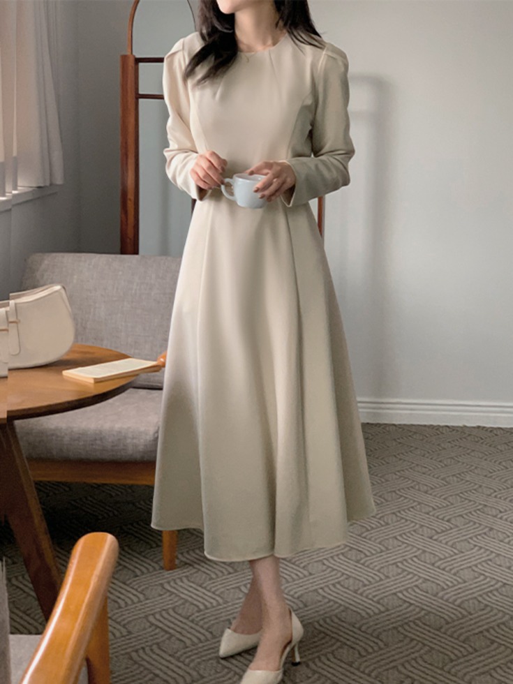 [가을신상/우아하객룩✦] [44-120] 누아르벨 라운드넥 벨트 롱 원피스( 가을-신상-가을신상-데일리-데일리룩-데이트-데이트룩-출근룩-오피스룩-자체제작-하객룩-빅사이즈-120사이즈-통통녀-가을하객룩 )