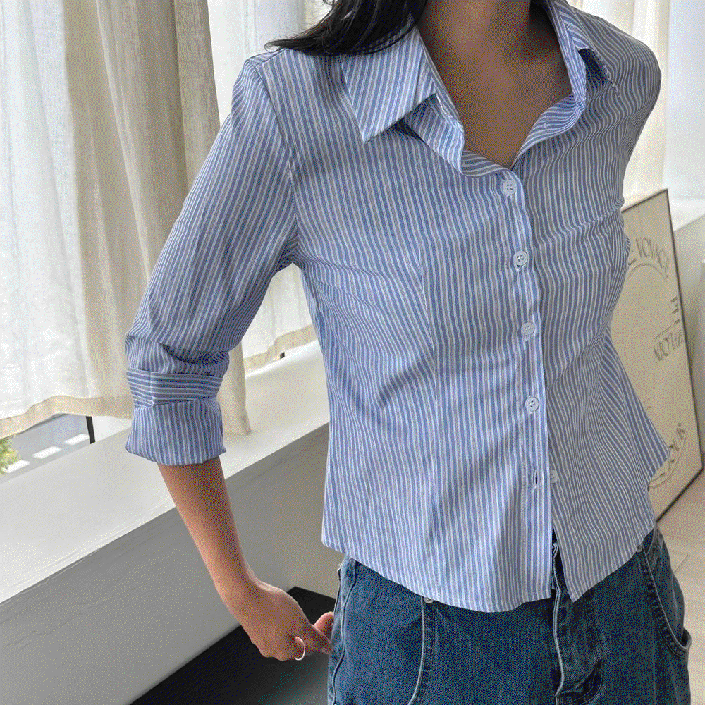 슬림핏 스판 스트라이프 셔츠 간절기 편안한 기본