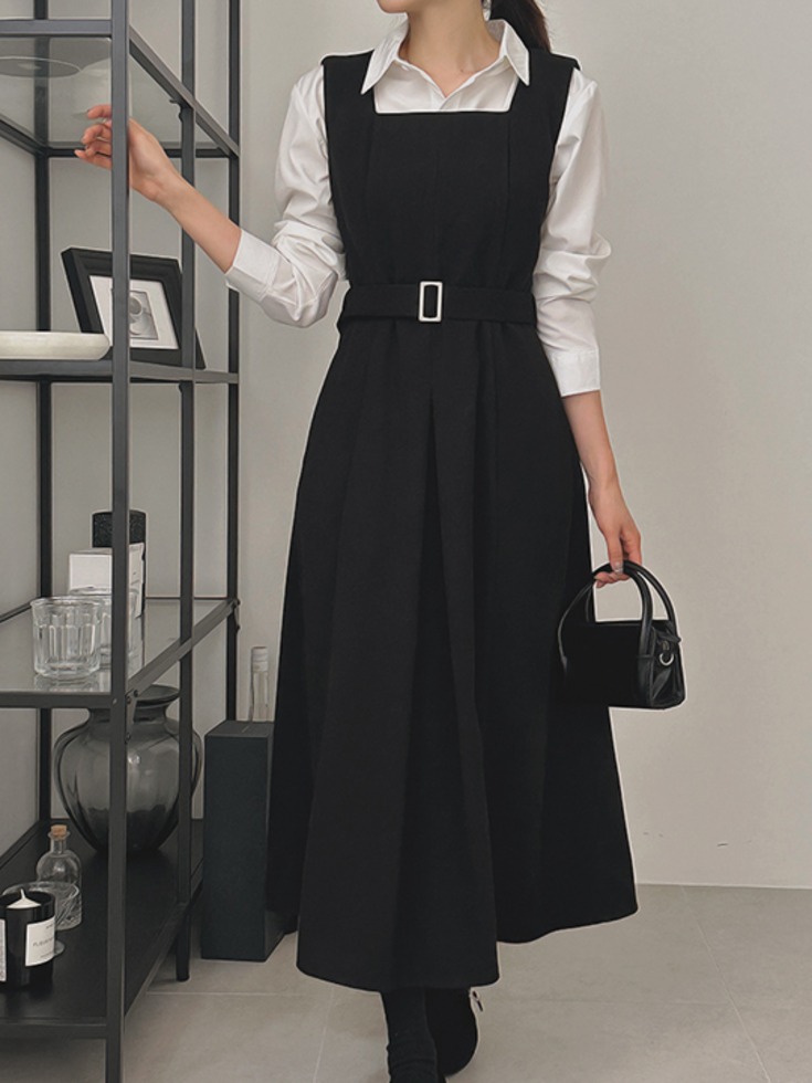 [1천장 돌파✨][포근기모/클래식무드] [44-120] 오브린즈 겉기모 맞주름 벨트 뷔스티에 롱 원피스 ( 가을-겨울-신상-기모원피스-벨트원피스-하객룩-격식룩-데이트룩-러블리-슬림핏-빅사이즈-120사이즈-자체제작)