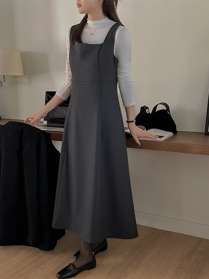 [허리잘록핏✔/시크여신무드] [44-120] 아델로아 스퀘어넥 뷔스티에 롱 원피스( 가을-신상-가을신상-데일리-데일리룩-데이트-데이트룩-출근룩-자체제작-하객룩-빅사이즈-120사이즈-통통녀 )