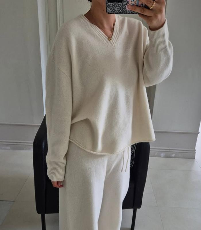 (네이비당일)홀가 브이 박시 니트