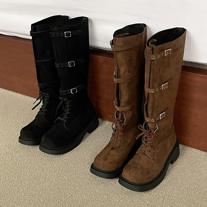둥근코 스웨이드 레이스업 벨트스트랩 롱부츠 4cm_sb04799[★품절]