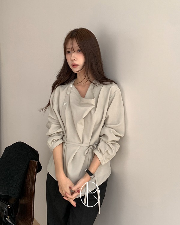 [Premium/격식룩][MADE] 포울 드레이프 스트랩 블라우스