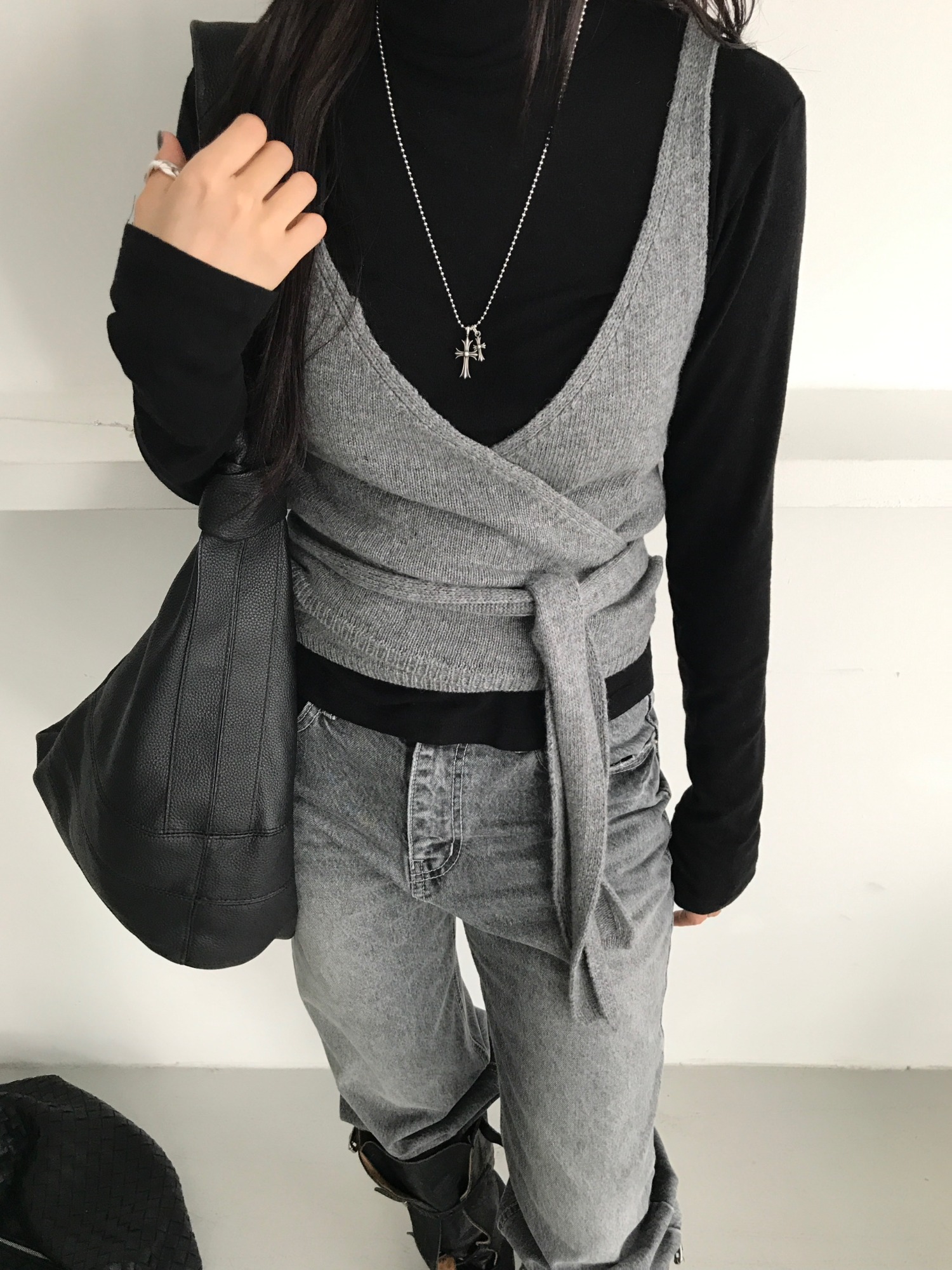 앤디 랩 니트 뷔스티에_3 컬러ㅣ헤비 울 80% 헤어 허리 스트랩 스트링 나시 슬리브리스 레이어드 FW 가을 겨울 신상