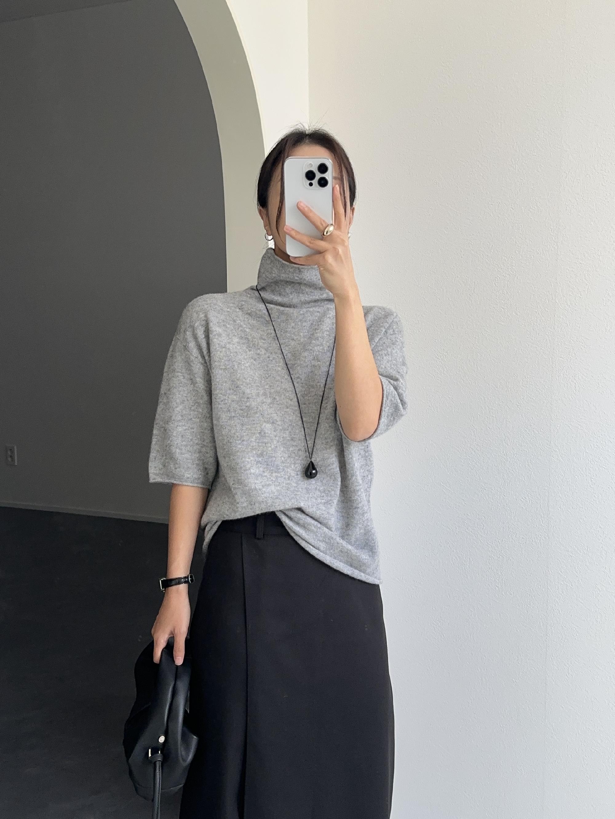 라엘 여성 겨울 루즈핏 이너 홀가먼트 반팔 울 니트