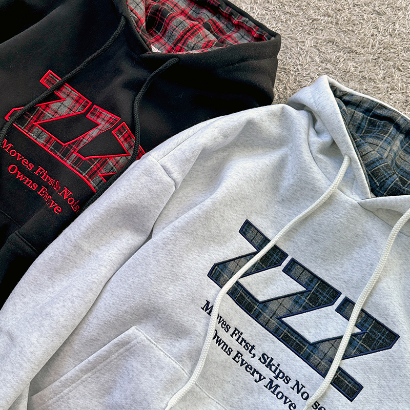 [KiKiZ] 기모체크투톤후드티-WI
