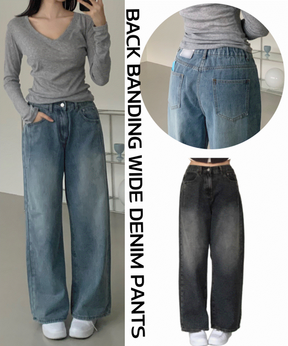 [XS~L/핏보장] 하이웨스트 밴딩 워싱 데님 와이드 팬츠 일자바지
