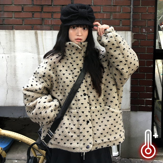 [누빔안감/왕따뜻] 구름 도트 뽀글이 단추 아방핏 왕오버 점퍼 자켓