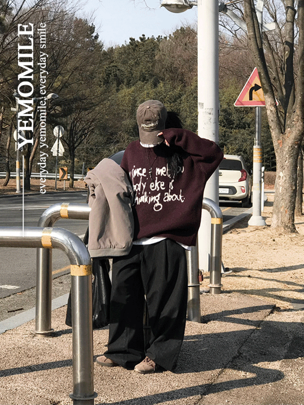 [unisex] 노바디 레터링 라운드 니트