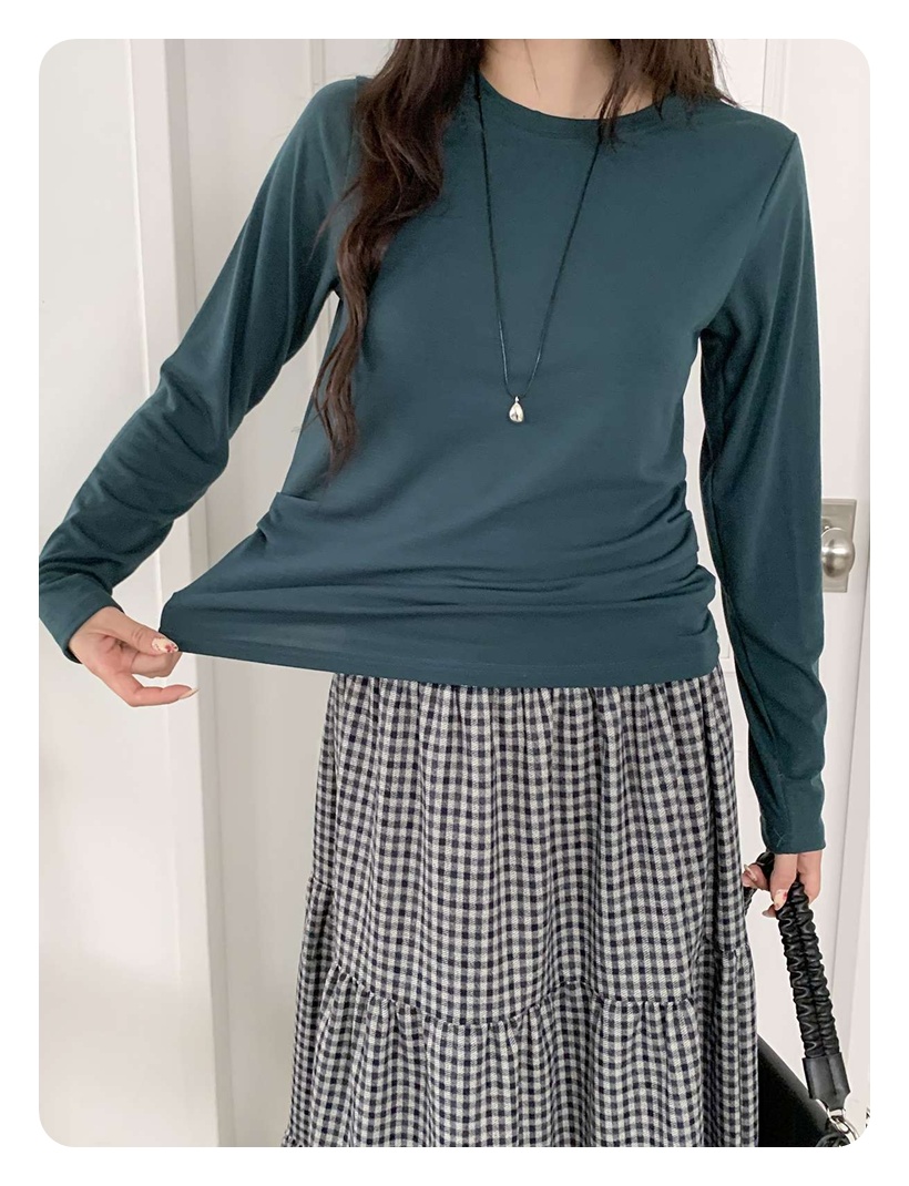 피치 라운드 긴팔 무지 기모 스판 셔링 티셔츠 여성 미시 겨울
