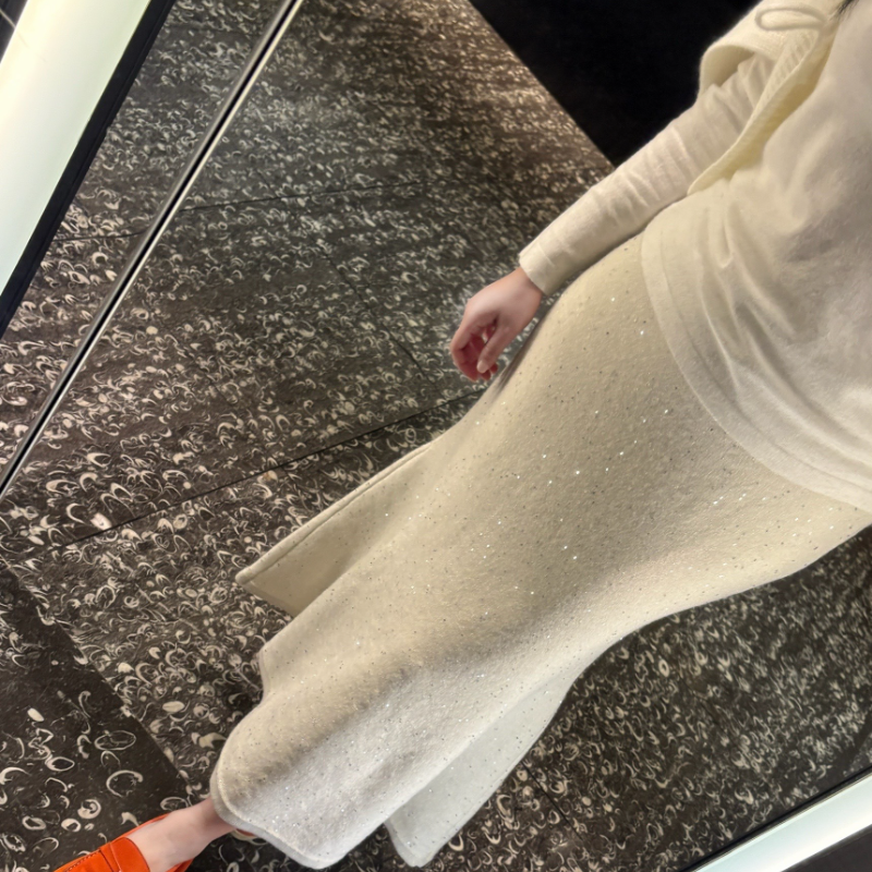 [도톰] 글리밍 펄 롱스커트 니트스커트