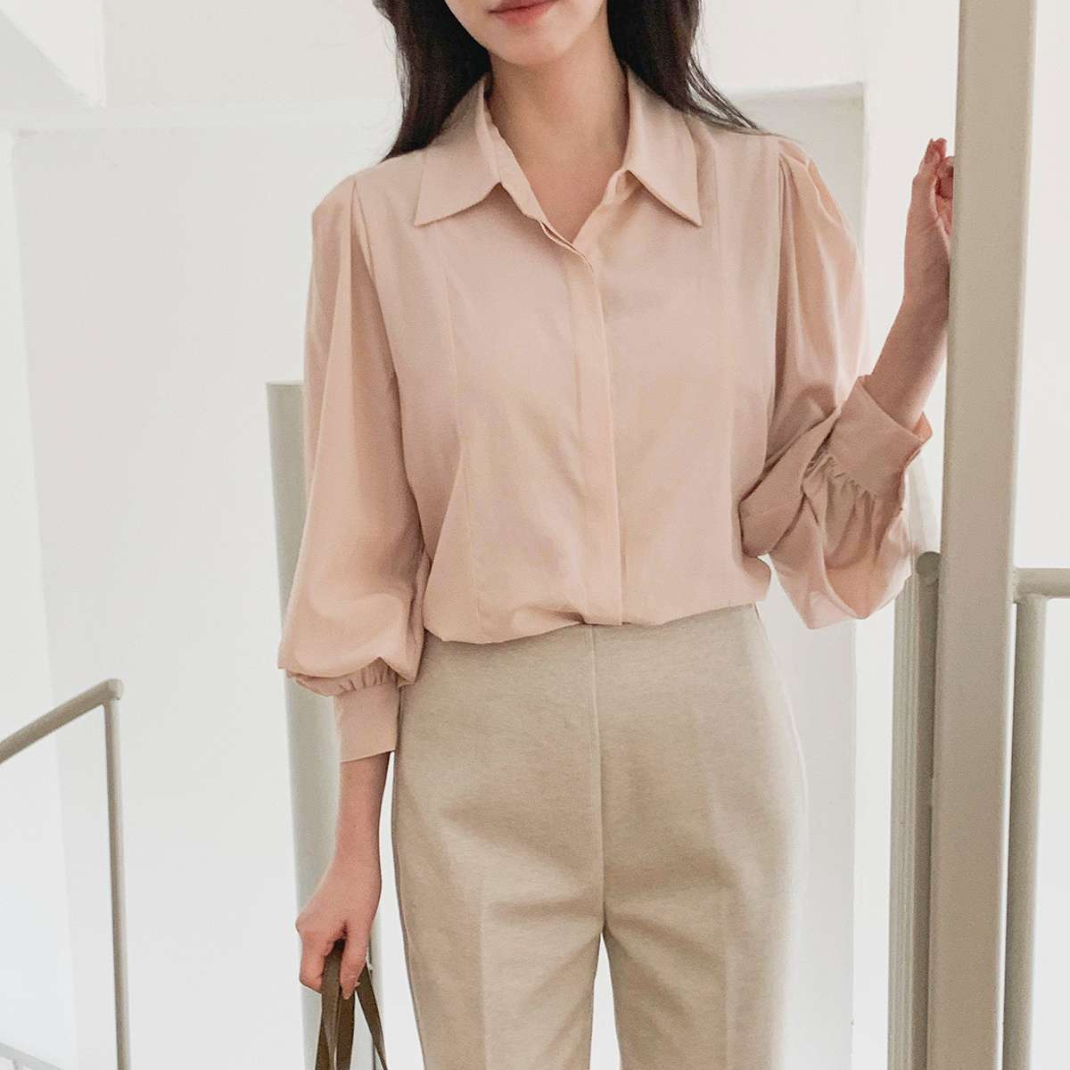 헤치프 오피스 시스루 퍼프 쉬폰블라우스-3color