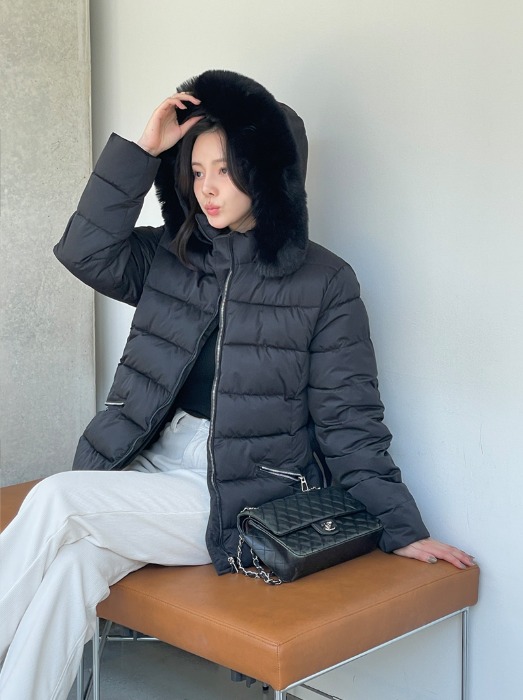 로에라 퍼 후드 숏 패딩 점퍼 (벨트set)