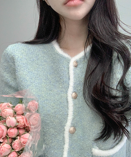 베니 도톰 배색 포켓 금장 가디건 (울10%)