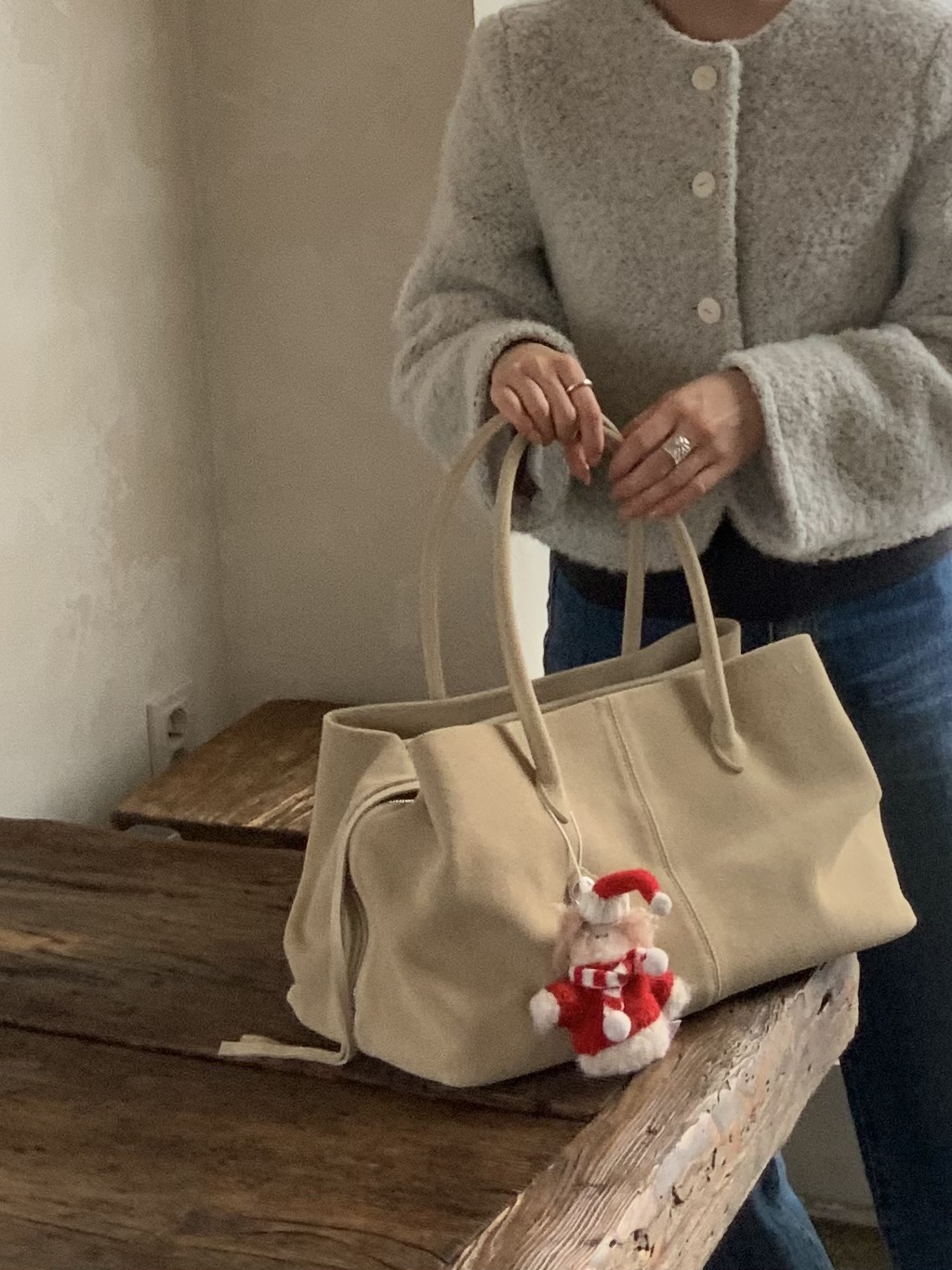 [천연가죽] 베이지 스웨이드 숄더백