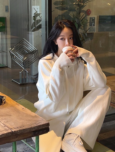 왕따뜻🔥 마로 융기모세트 후드니트+와이드팬츠세트*
