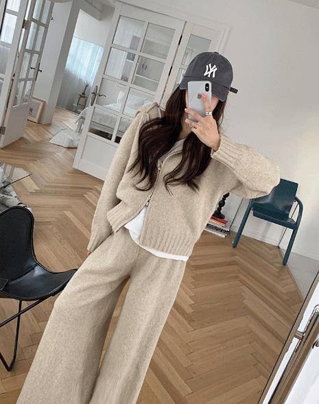 [SET] 라떼 니트 후드집업 팬츠 세트