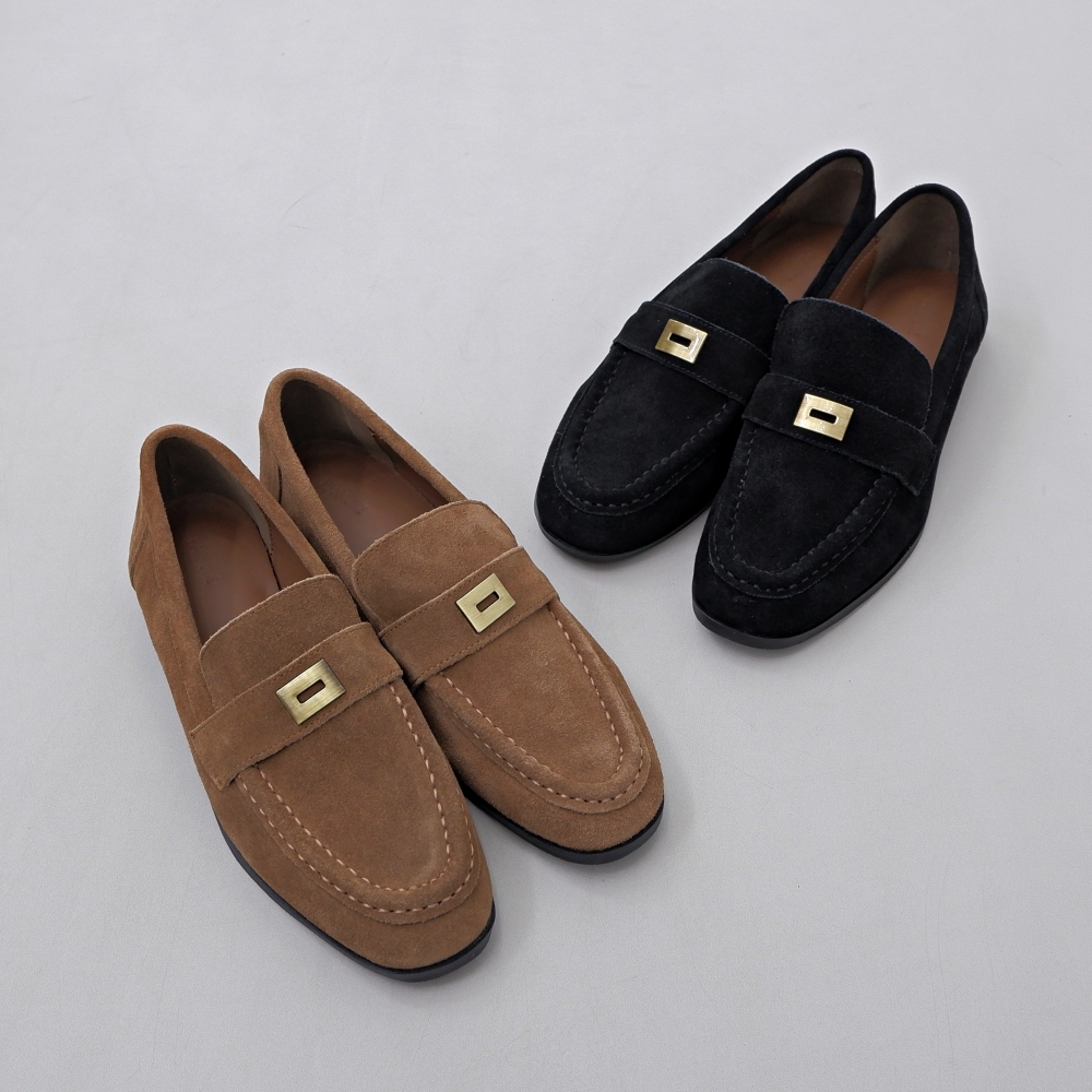 천연소가죽 스웨이드 브론즈 버클 로퍼 1.5CM