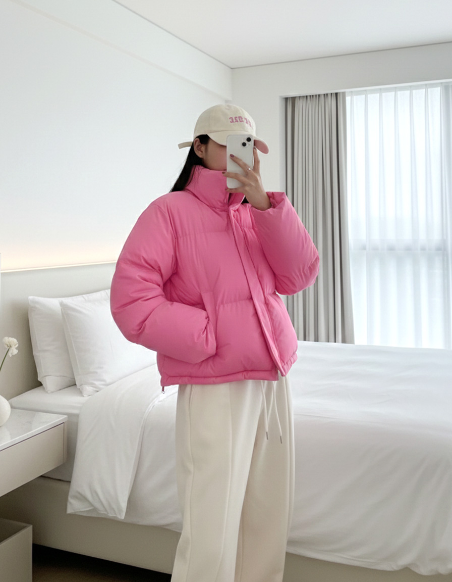 [데일리/따뜻/색감🩷] 로지 클린 하이넥 스트링 숏 패딩 (3color)