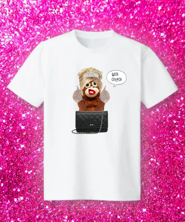 [할리우드 LA 핫걸 st] 원숭이 살아 이년아 밈 티셔츠 웃긴 재미있는 반팔티 쓸없선