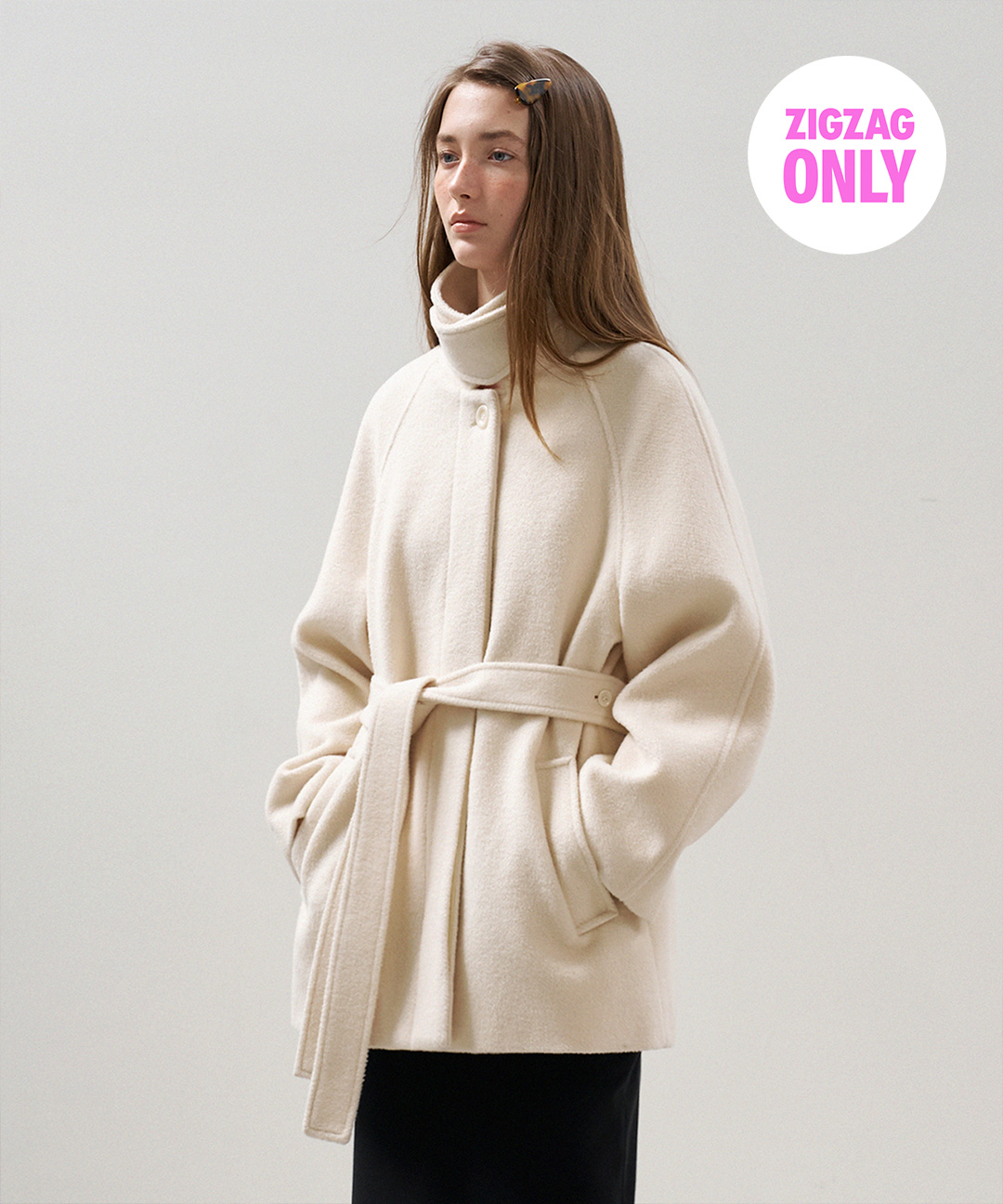 [지그재그 단독] 파운드 울 하프 트렌치 코트_Cream