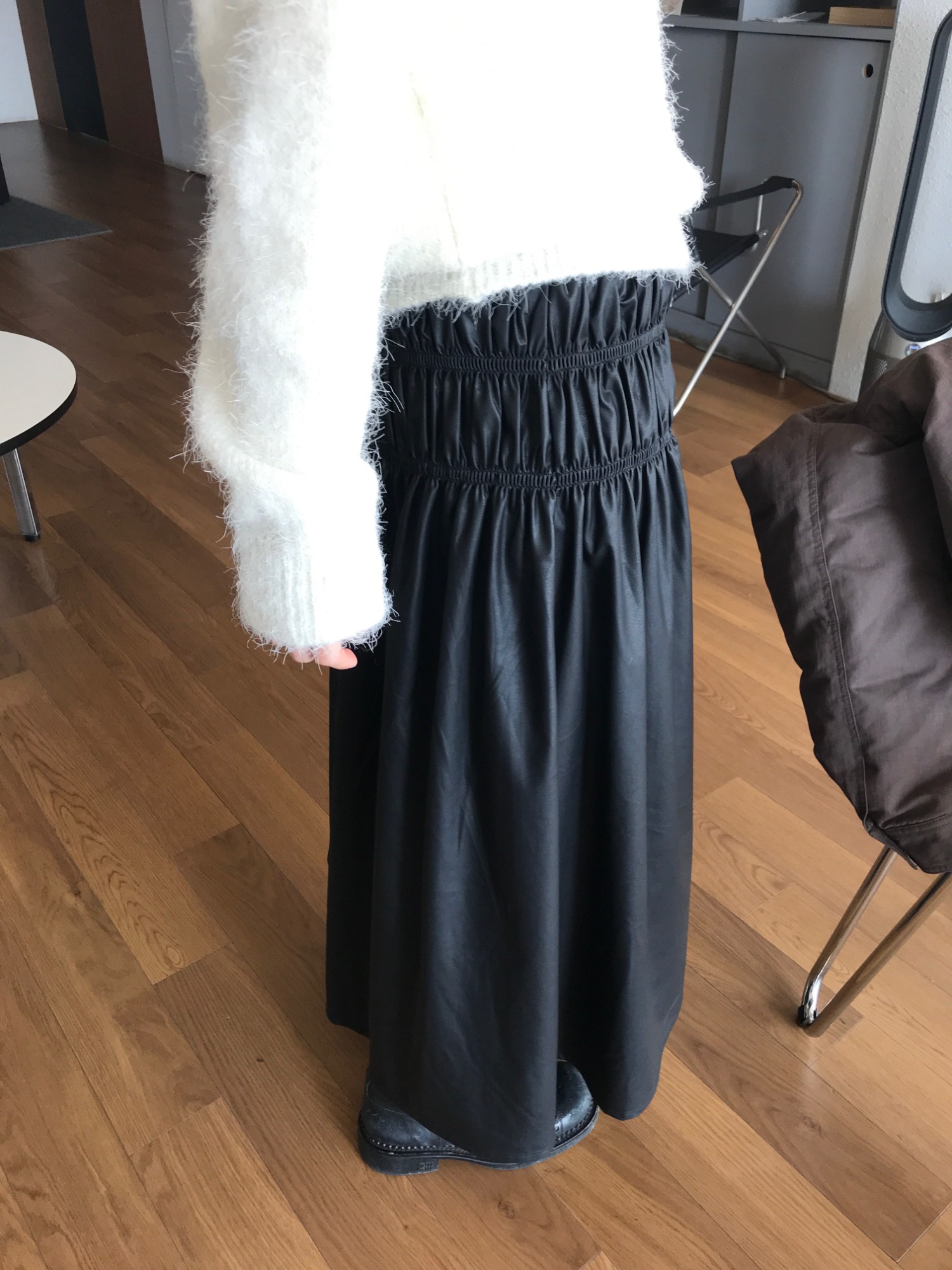 리츠 셔링 레더 스커트_3 컬러ㅣ셔링 밴딩 플리츠 플레어 긴 롱 맥시 치마 간절기 가을 겨울 하객룩 연말룩 크리스마스룩
