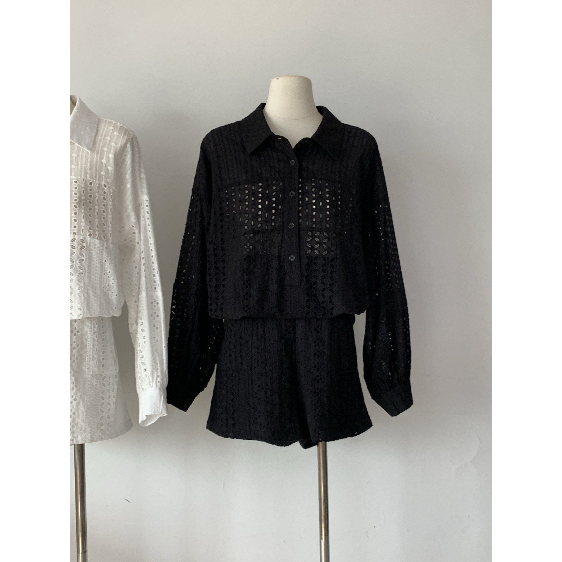 [셔츠 단품] 펀칭 코튼 셔츠 밑단 스트링 반오픈