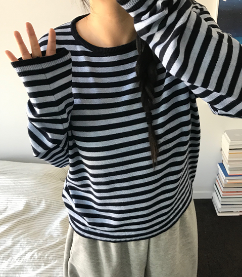 간절기 스윗 라운드 스트라이프 무지 니트 (6color)