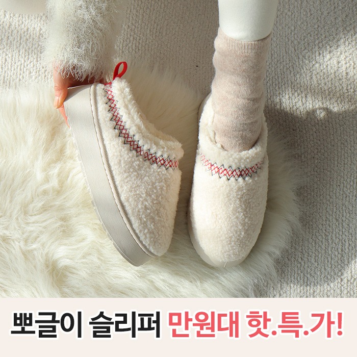 [이염 및 미세스크래치 세일] 스노볼 뽀글이 키높이 통굽 털 슬리퍼(4cm)