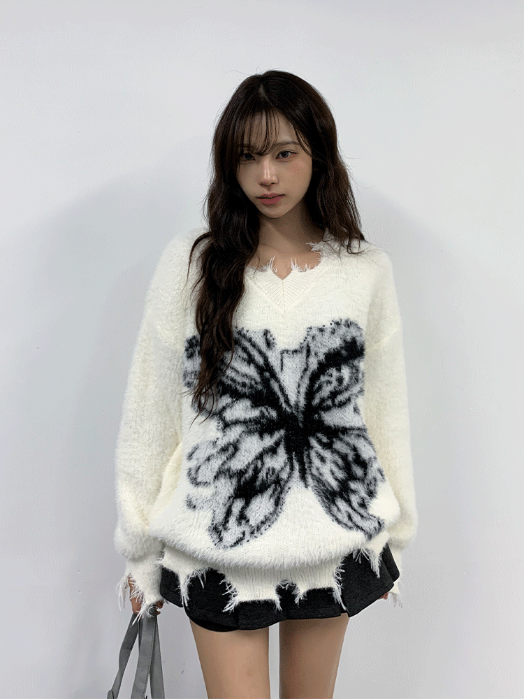 인기✨ 유릿 프린팅 오버핏 빈티지 니트