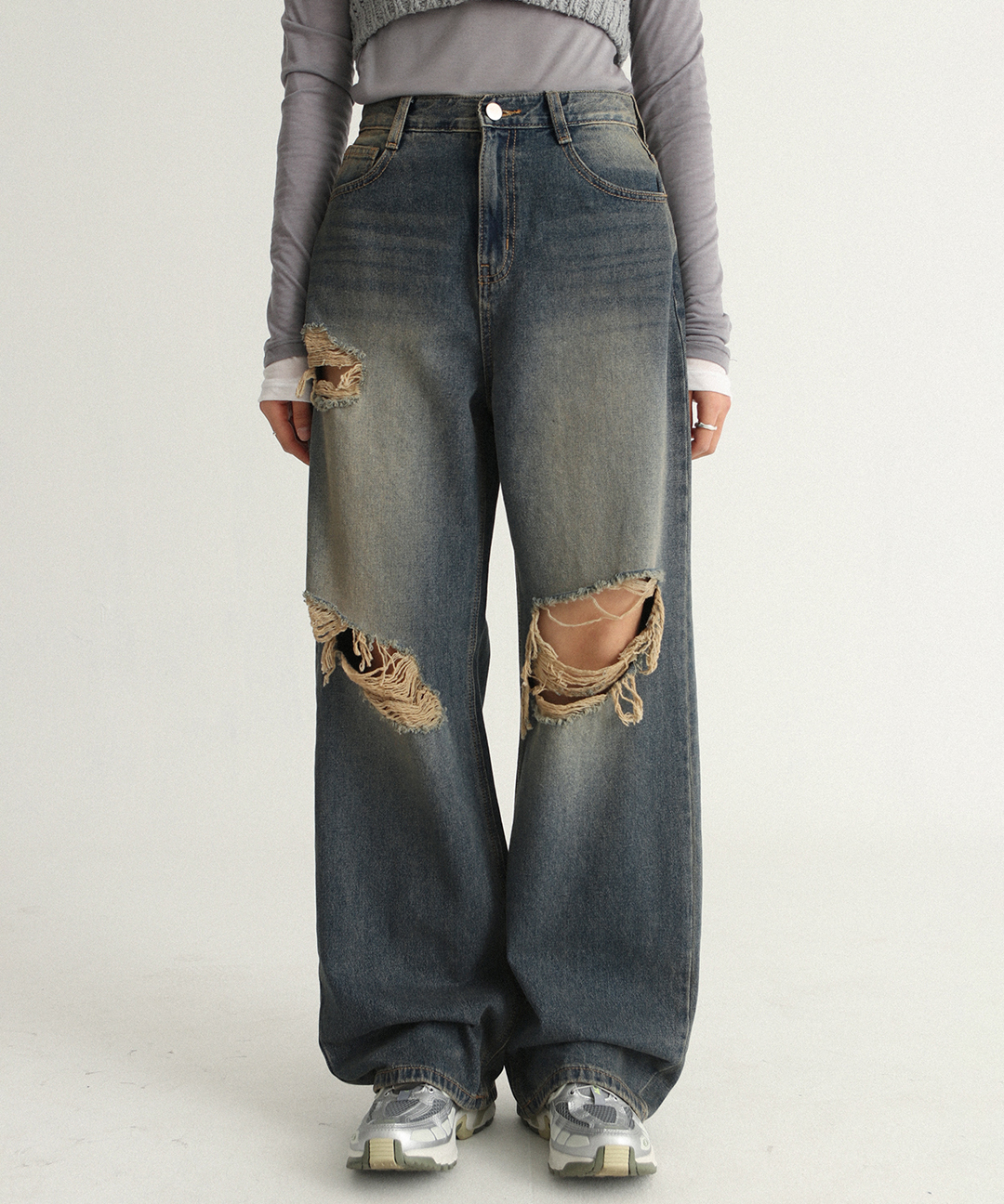 [made] 엠버 웨이브 데미지 와이드 팬츠