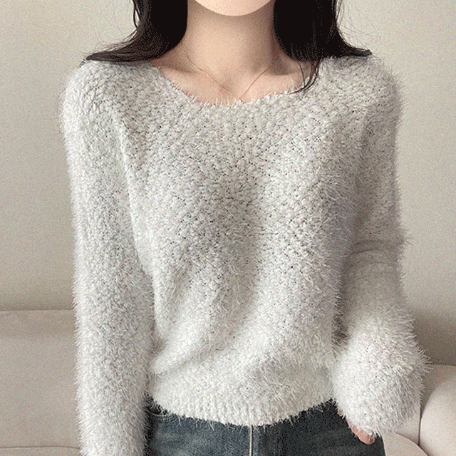 [여리여리/핏예쁨] 구름 솔잎 브러쉬 퐁퐁 라운드넥 니트 3color