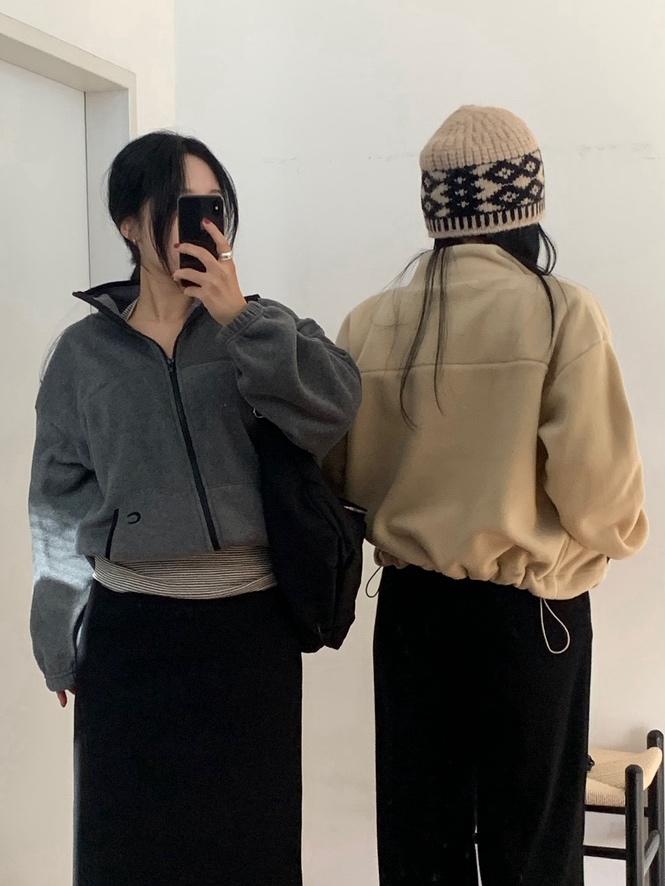로웰샵 / 멘드 배색 자수 스트링 후리스 집업 JP (2color) 254