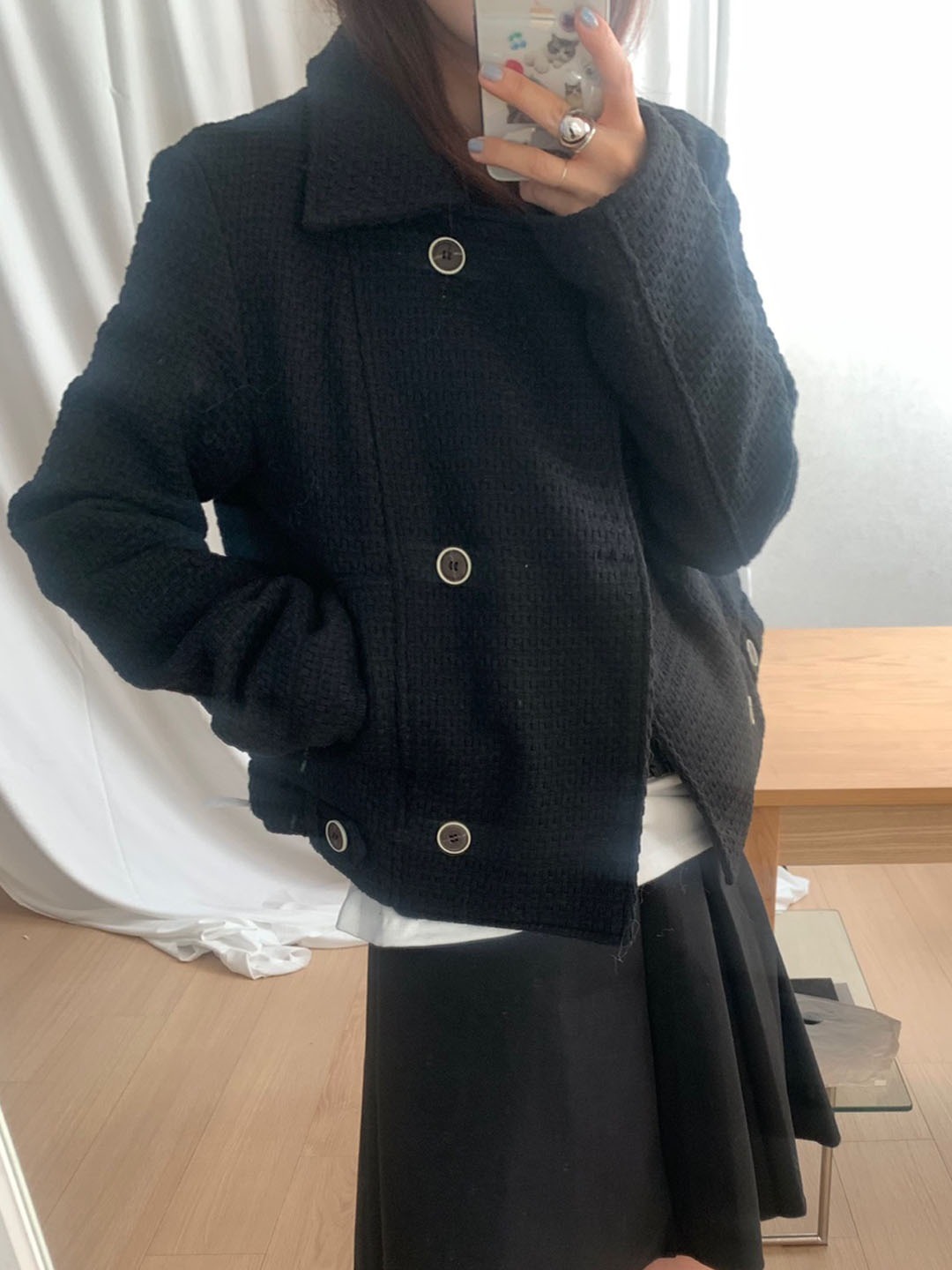 [누빔안감/시크] 더크 더블 단추 트위드 블랙 자켓