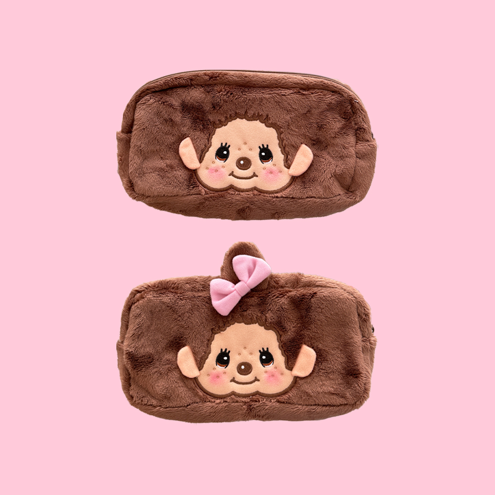 몬치치 캐릭터 인형 사각 필통 파우치 [정품 몬치치짱 문치치군 몽치치 MONCHHICHI 굿즈 귀여운 봉제 털 지퍼 대용량 휴대용 화장품 스퀘어]