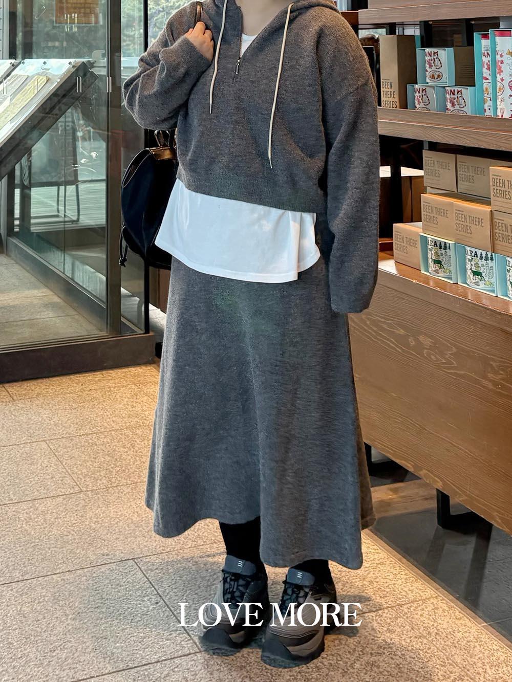 [LOVE MORE / 하투MADE] 소피 후드 반집업 니트 셋업 (2color)