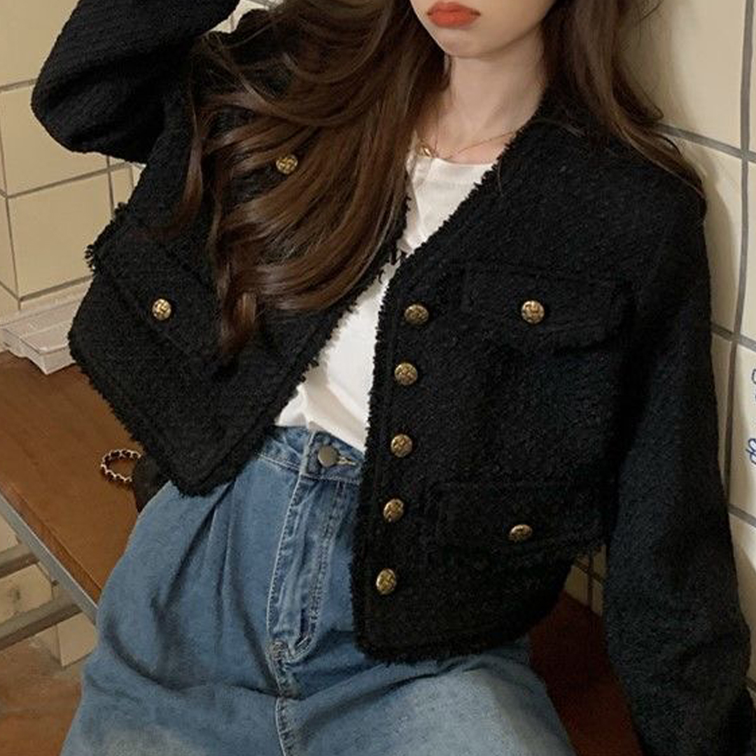 [러블리/데일리룩🧡]트위드 크롭 자켓 겨울아우터 숏코트 골드버튼 캐주얼 하객룩 출근룩 격식룩