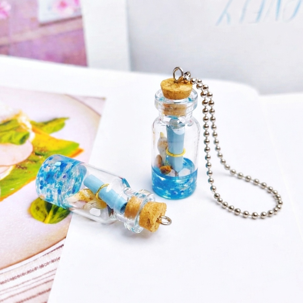 유리병편지키링 타임캡슐편지지 고백 소원병 감성선물 소품 행운 블루 바다 코르크마개