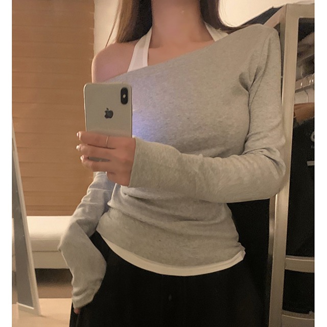 [오프가능🤍] 레이어드 여리핏 원숄더 오프숄더 루즈핏 긴팔 티셔츠