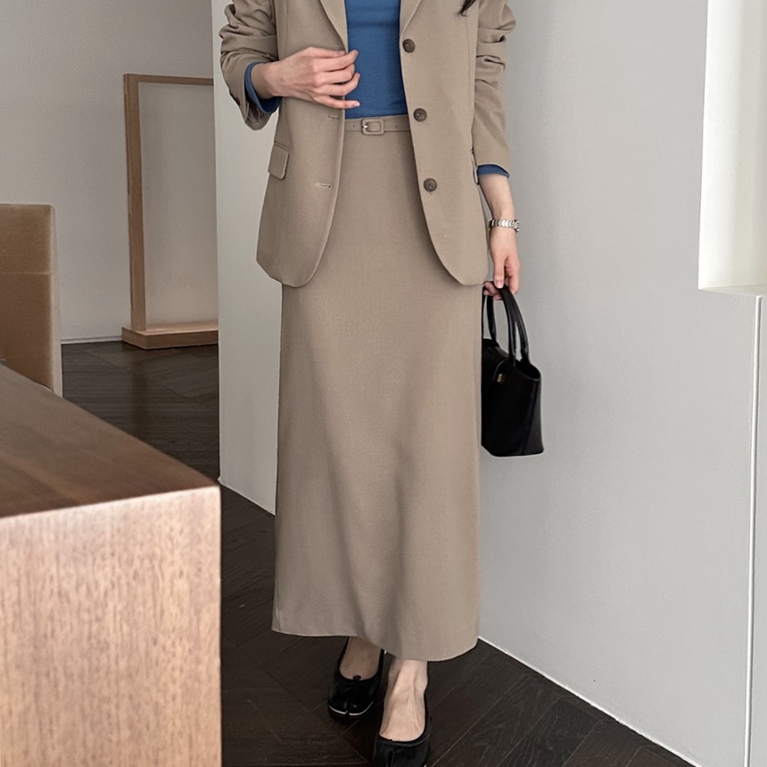 봄 간절기 H 라인 세러데이 누크 벨트 세트 롱 스커트 정장 치마 하객룩 오피스룩