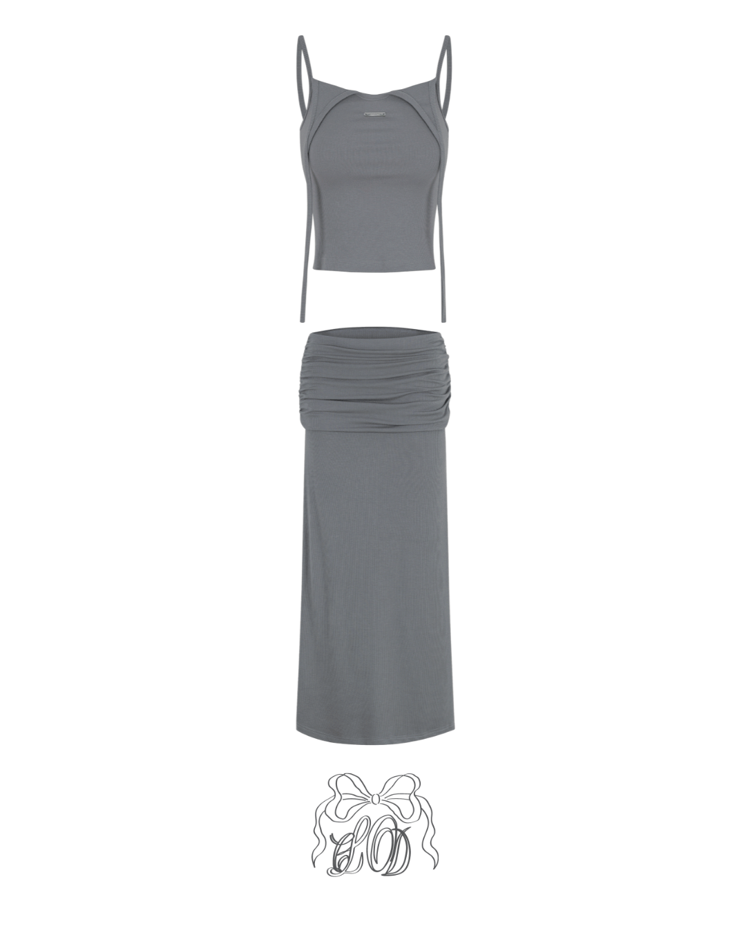 [♡MADE♡] signature fuglet drop line vt + shirring low sk set